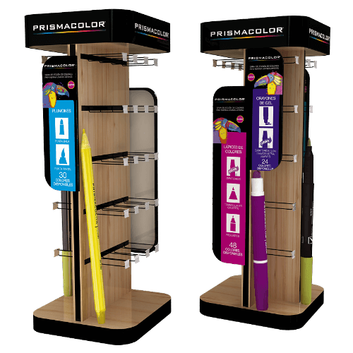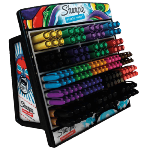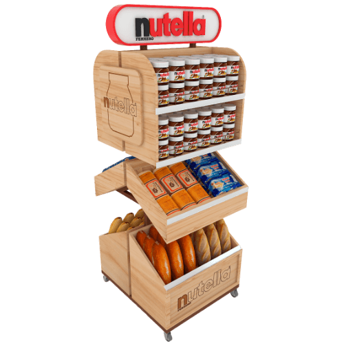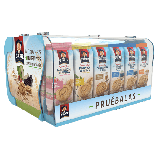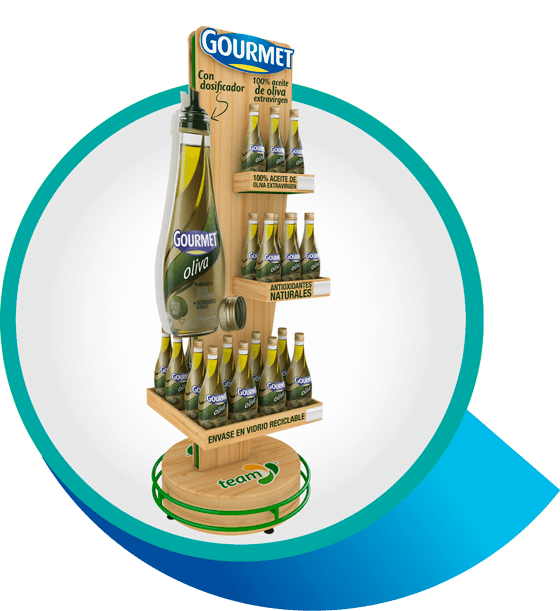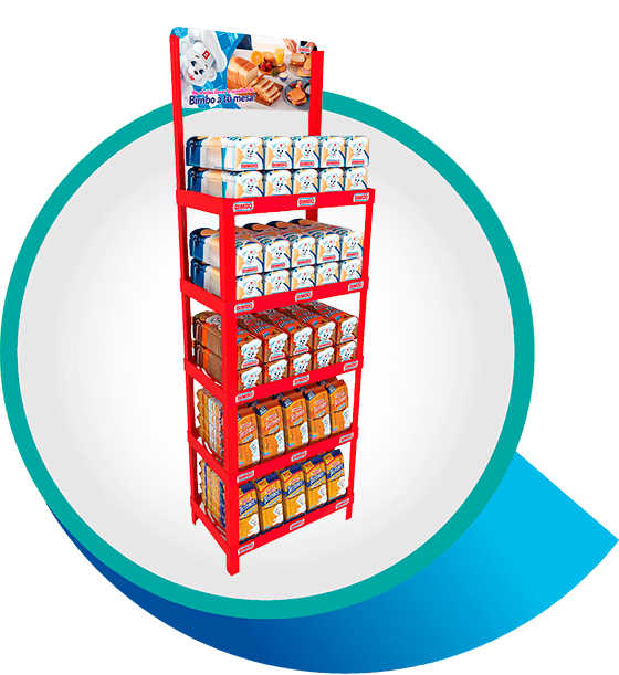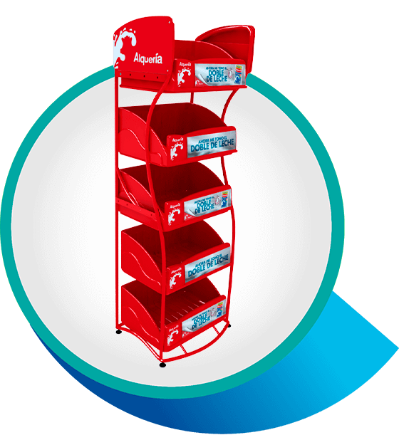 Muebles de exhibición, bandejas, ristras, material POP y promocionales